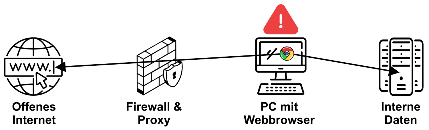 In vielen Organisationen wird der Webbrowser direkt im internen Netzwerk auf dem Arbeitsplatz-PC ausgeführt. Damit werden Webinhalte aus dem Internet unmittelbar in der internen Umgebung verarbeitet – ein riskantes Prinzip.